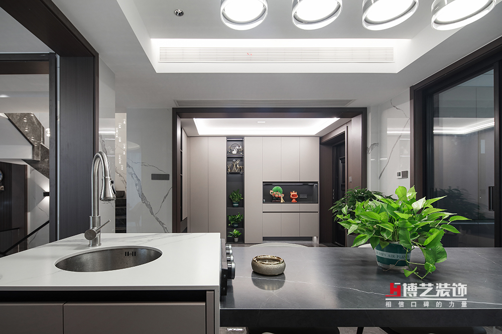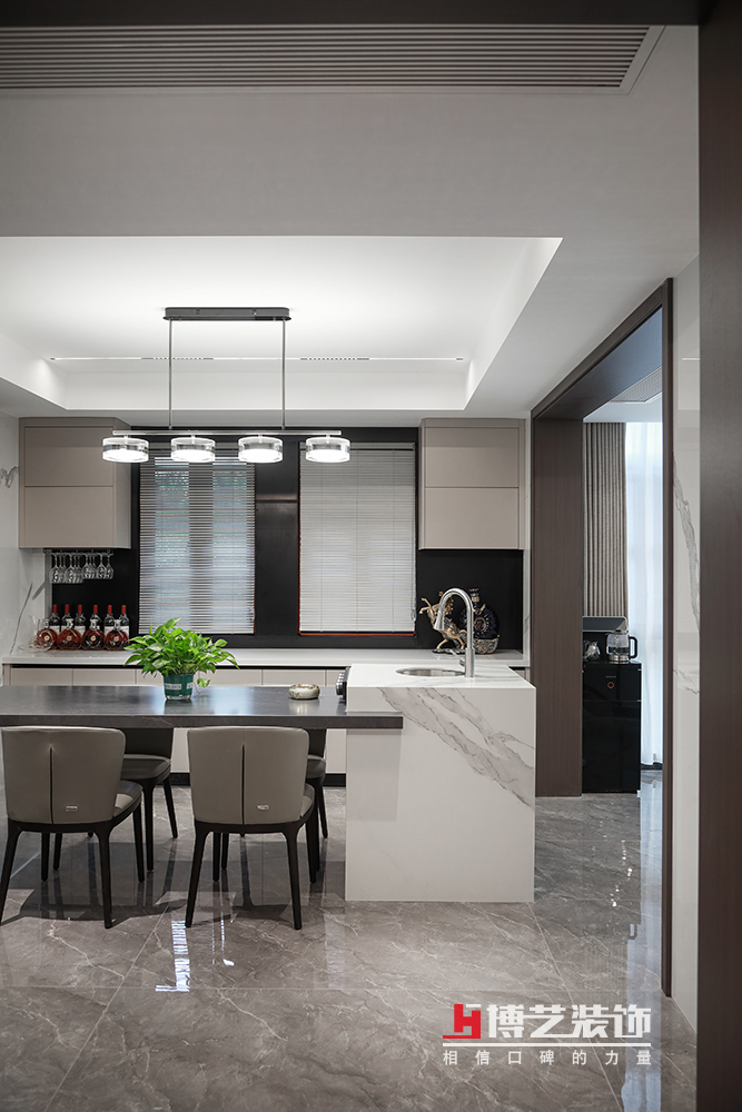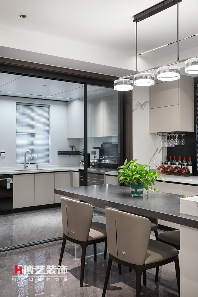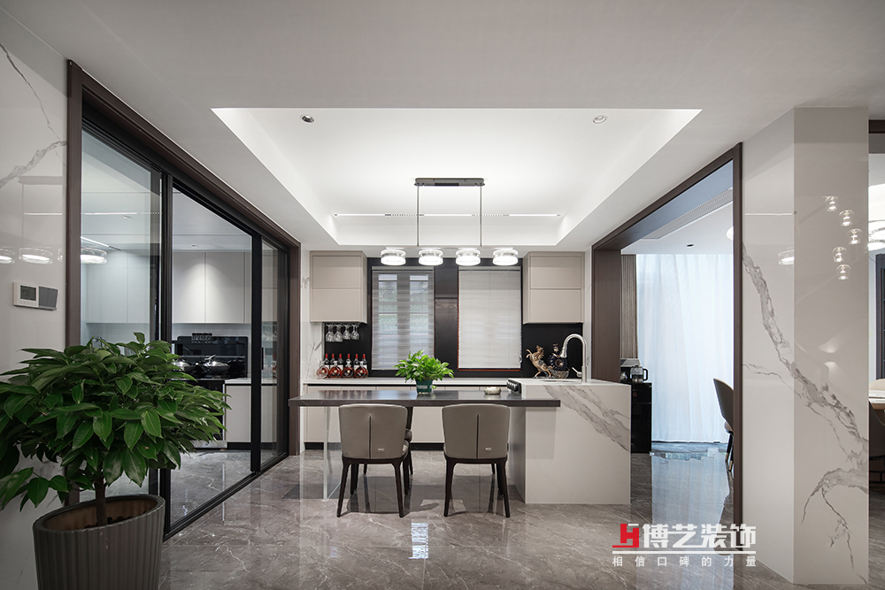 开放式的岛台作为厨房和餐厅之间的过度,也保留了西厨的使用功能。