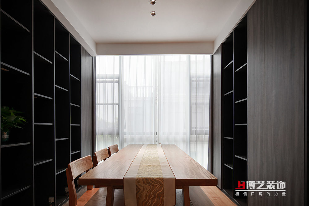 除了各自的卧室洗漱空间,二楼的书房是兄弟俩共用。我们选择了较大台面的空间,可以让他们共同学习工作,就像一条无形的纽带,把家人之间的关系凝集地更加紧密。