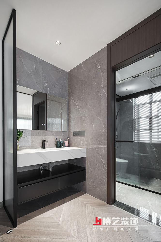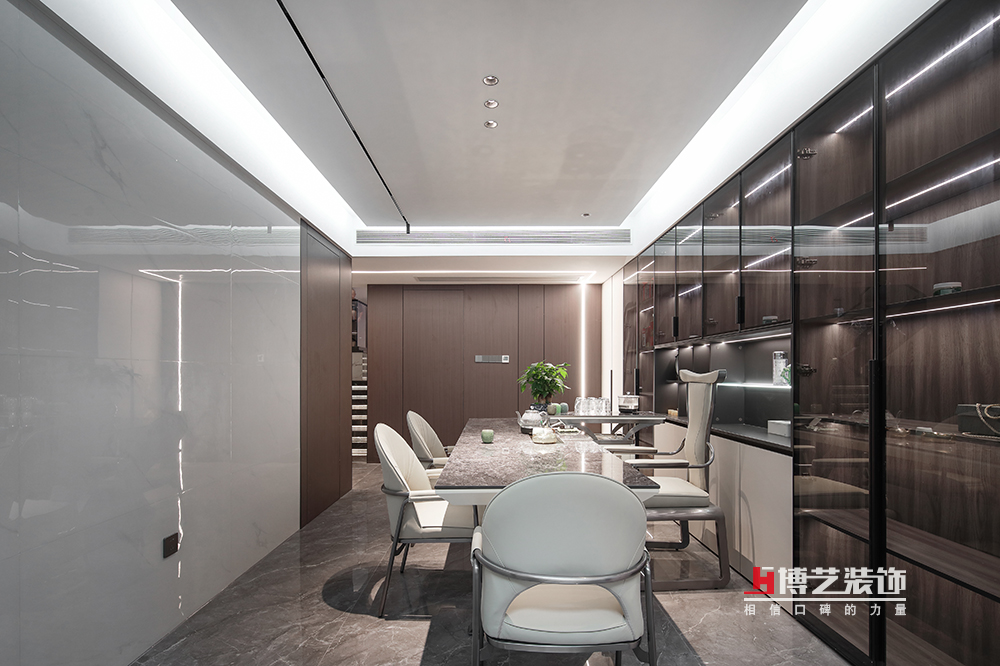 整个公区我们尽量让视野开阔,避免采用生硬的隔断,从而让整个空间更加整体。我们更多得采用玻璃等通透的材质,让光线贯穿,阳光正好,微风不燥。