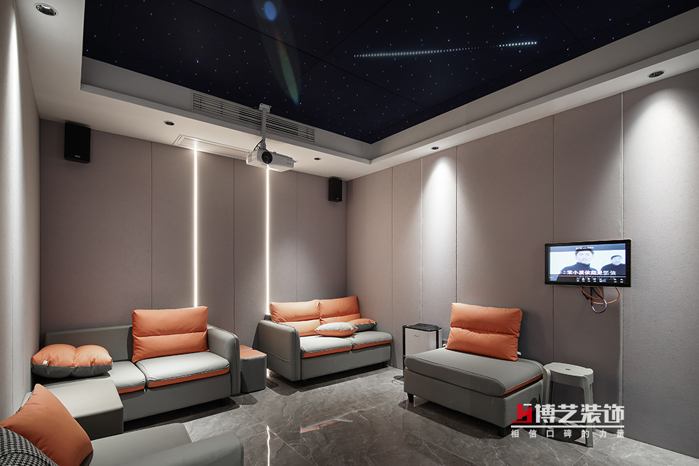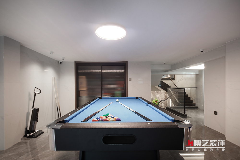 地下室主要规划成了一家人的休闲空间,影视厅,台球室,水吧台,所有的休闲娱乐设施应有尽有,满足了全家人的休闲时光。