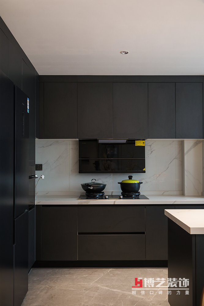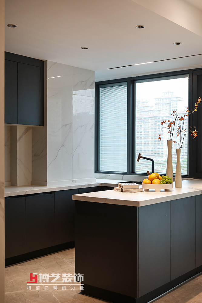 3.厨房做开放式设计,增加中岛作为厨房和餐厅之间的隔断和过渡,美观且实用;