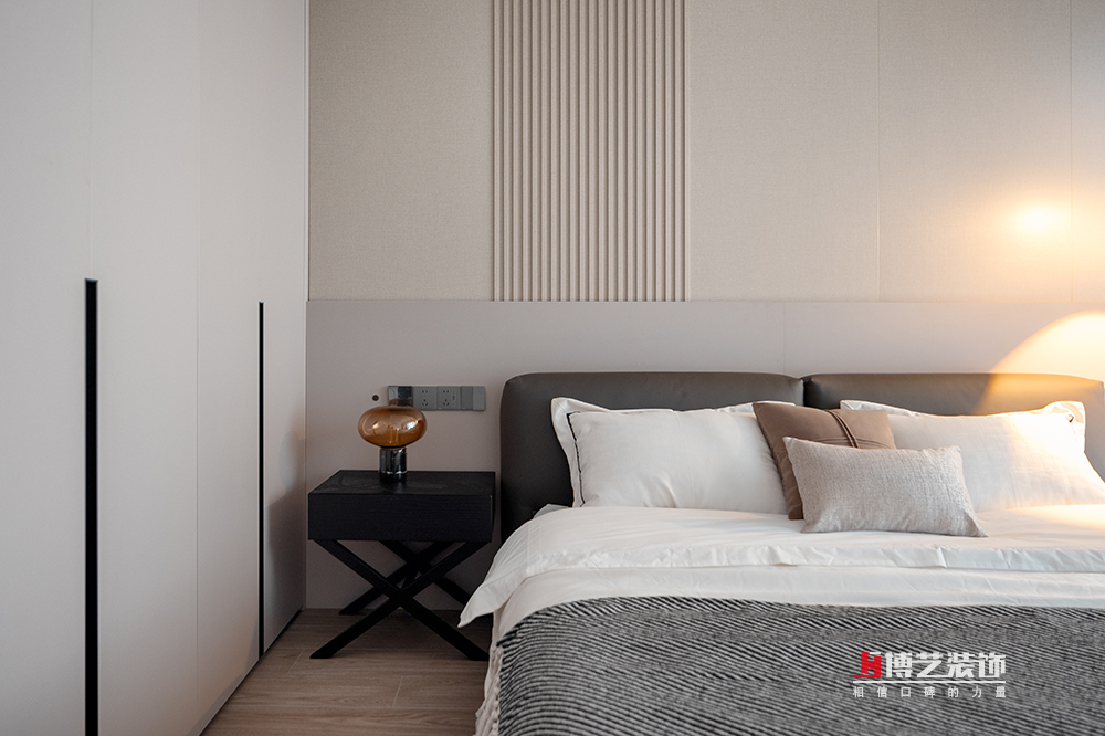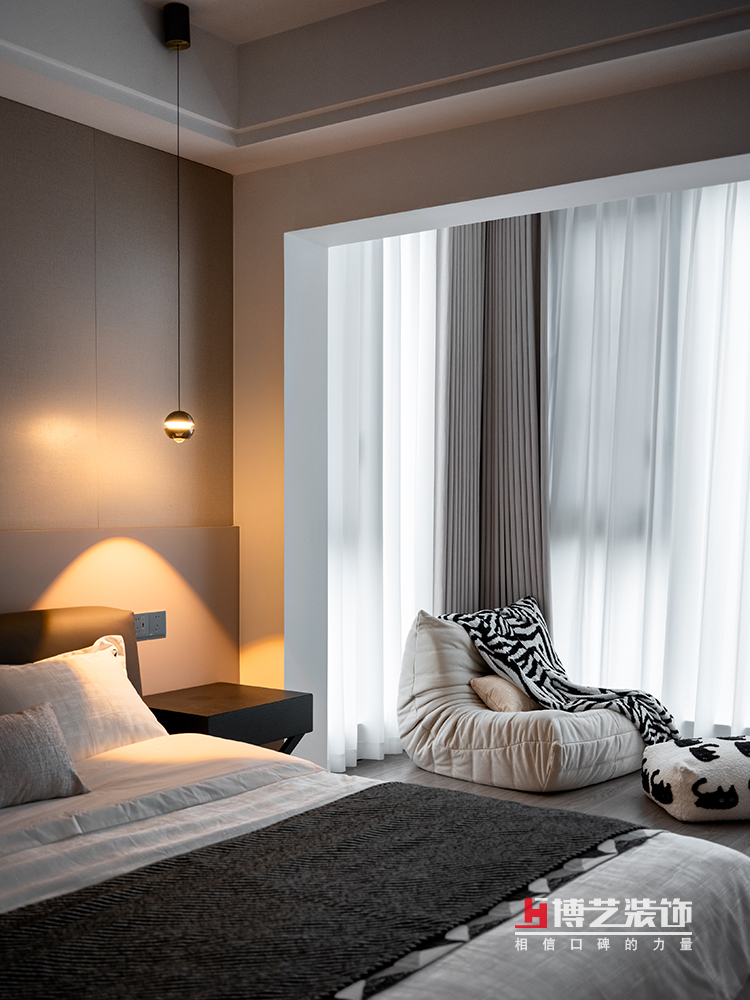 主卧做套房的设计,与书房一起在安静的三楼,无论休息或者办公都可不被打扰,专注内心。而极简的设计,抛却多余的杂物,只保留最必要的元素,打造出的空间宁静舒适,让一切简单而美好。