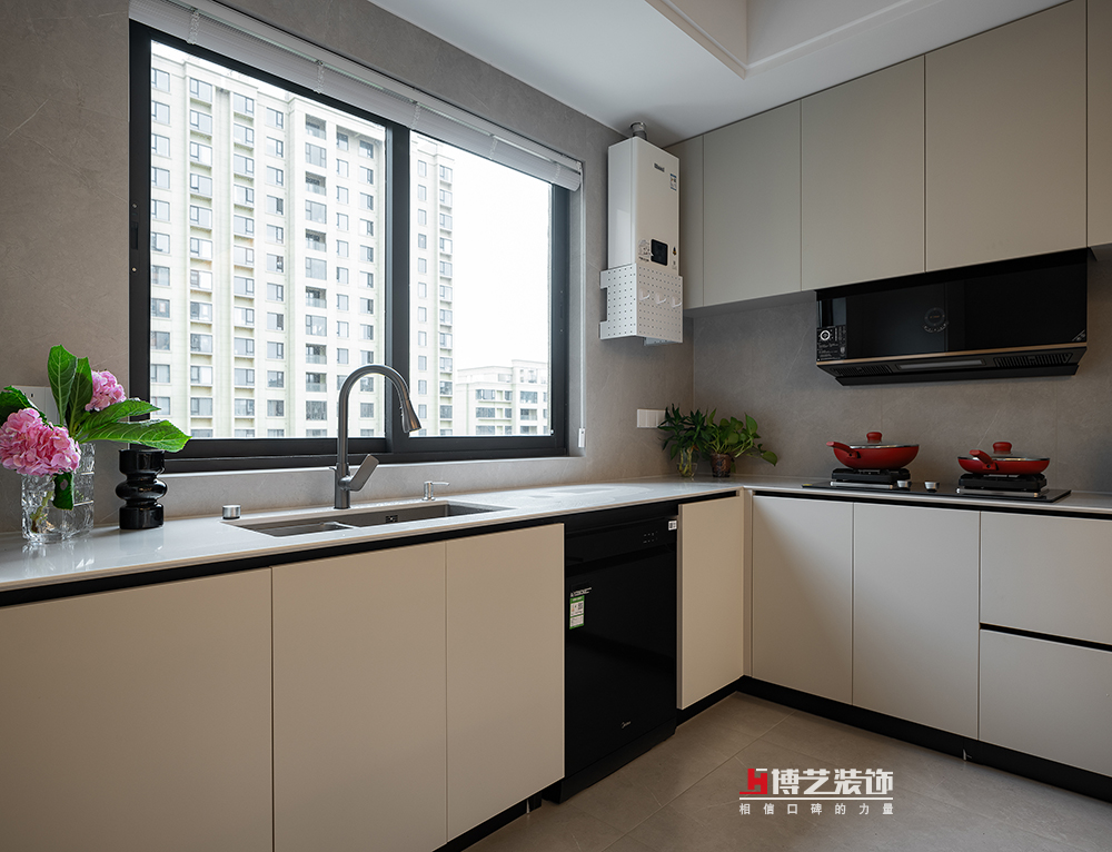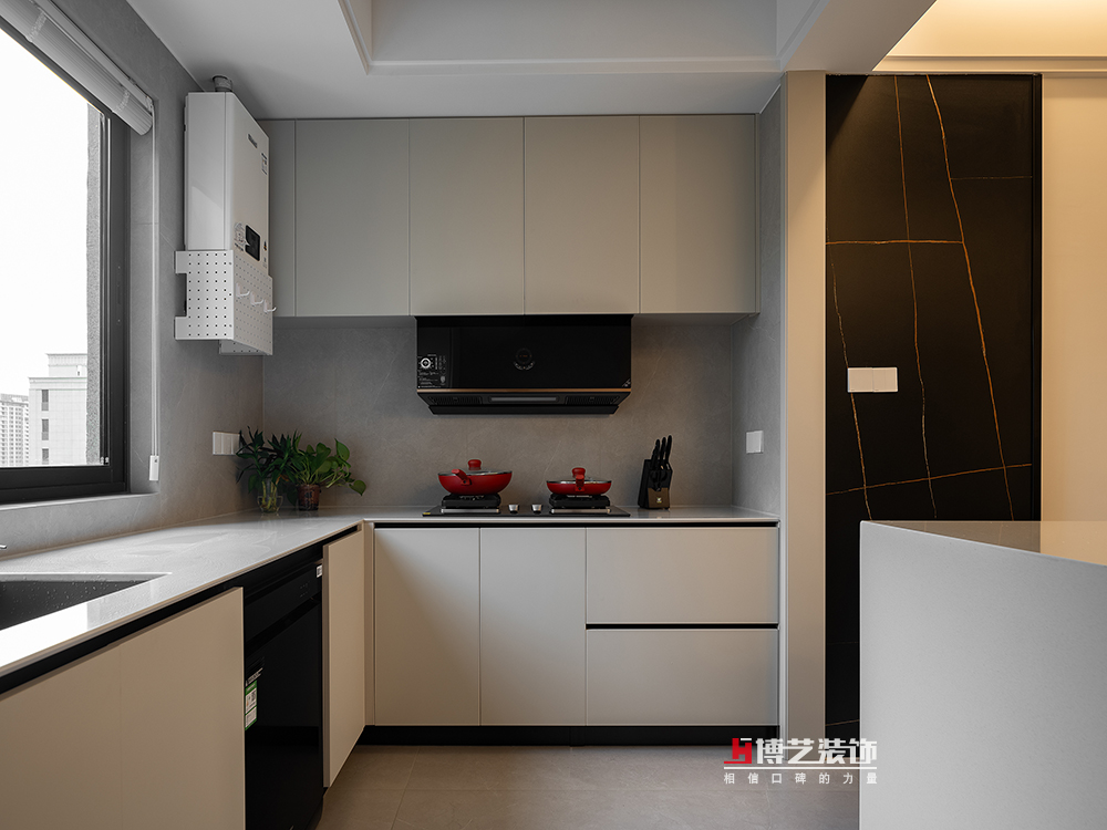 开放式的餐厨格局,让家人之间的互动性变得更强,超多的操作台面,超大的操作空间,让家人间的互动更为亲密和谐。导台也总是能在合适的时候秒变小吧台,无论是清晨的粥还是深夜的酒,都能在这找到惬意的打开方式。