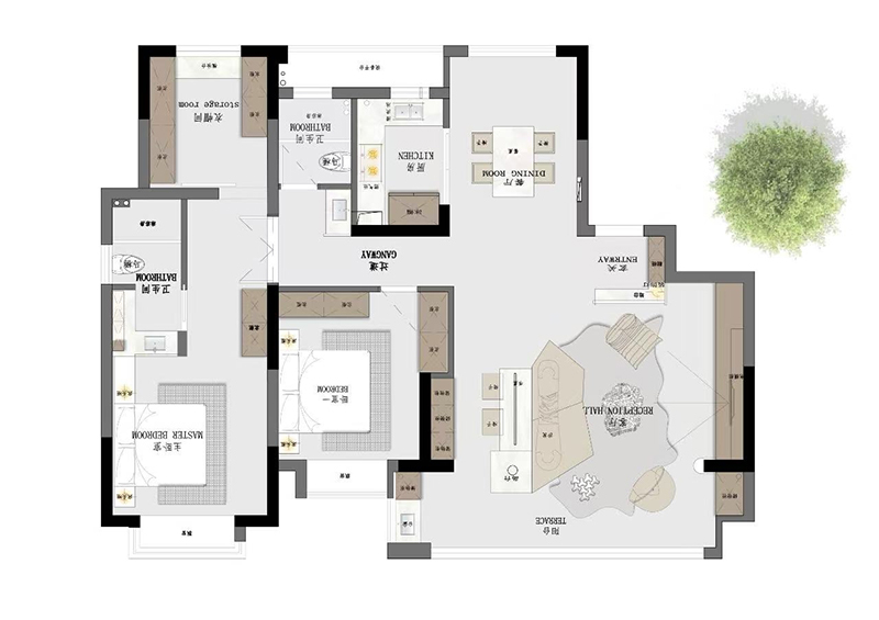 2.大横厅+双阳台的空间布局,使得公区环境更加开阔通透,同时功能也更加复合;