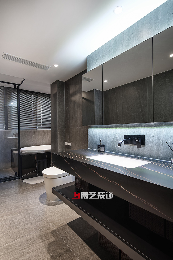 卫生间依旧用深色表现温暖,泡上一个澡解除一天的疲乏,你的慵懒尽情释放。