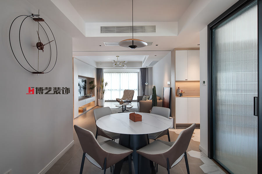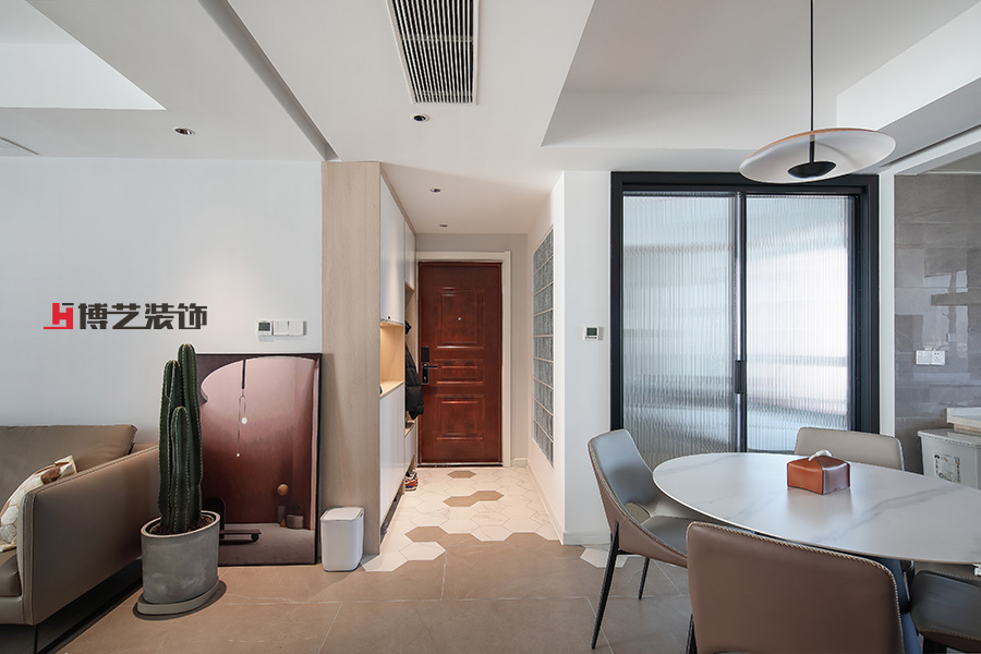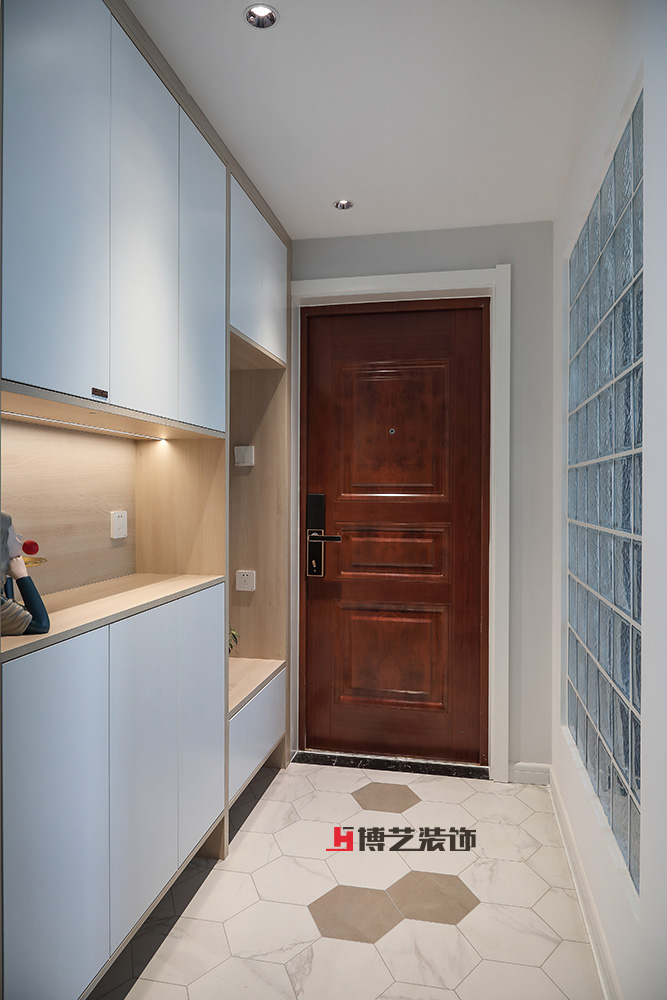 朦胧的玻璃砖让自然光纳入,辅以暖光,让家的温暖从进门这一刻就铺面而来。