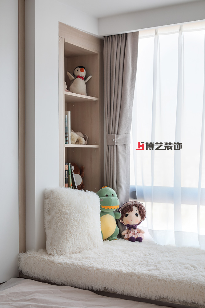 温柔的自然之色中点缀俏皮粉色,简单中显出几分可爱。毛茸茸的抱枕,几个布玩偶,是一个小女孩对我们的诉说。