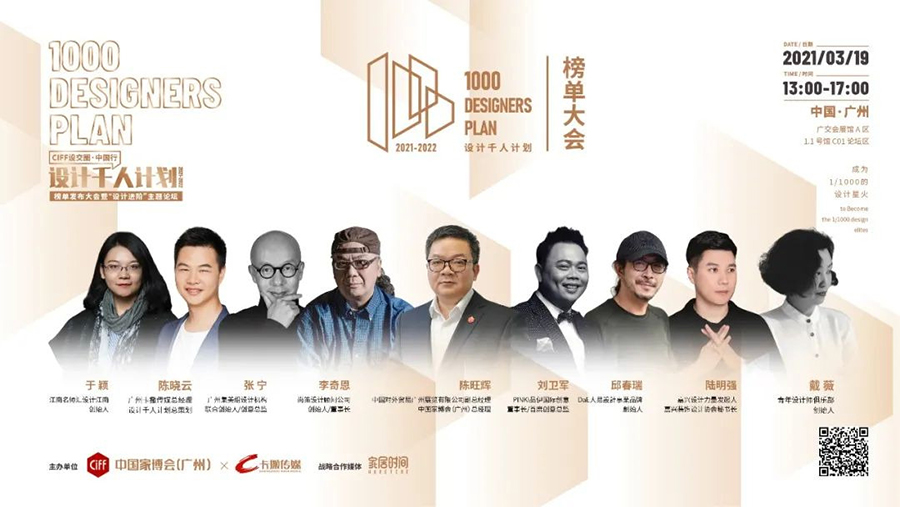 3月19日,CIFF设交圈“设计1000计划2021-2022”榜单发布大会暨“设计进阶”主题论坛在第47届中国家博会(广州)举行。