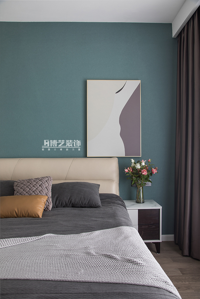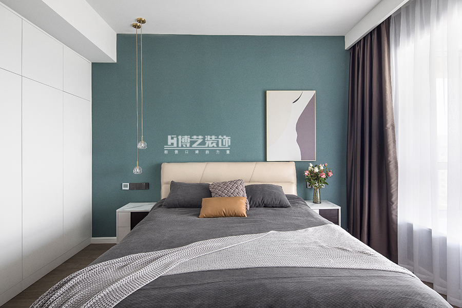 绿色代表着生机与活力,调入淡淡的灰色,仿佛在空间里注入了静谧的因子,让烦躁的心灵可以安静的思考,劳累的身体得到舒适的休整。