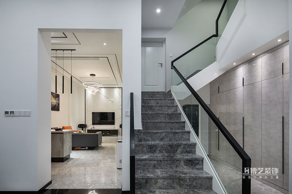 地下室区域为整个房子的休闲娱乐区,设计师改变了原来楼梯的朝向,使得地下室的动线更为独立,互不影响;同时利用五米的层高优势,增加了一个客房,既增加了储物收纳又可做亲朋来访时的休息室。