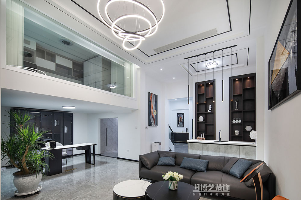 摒弃繁复的设计,选择黑白灰的干练配置,在高挑的空间中,黑色低调却不容忽视的气场,不经意的撩拨着所有人的眼球。