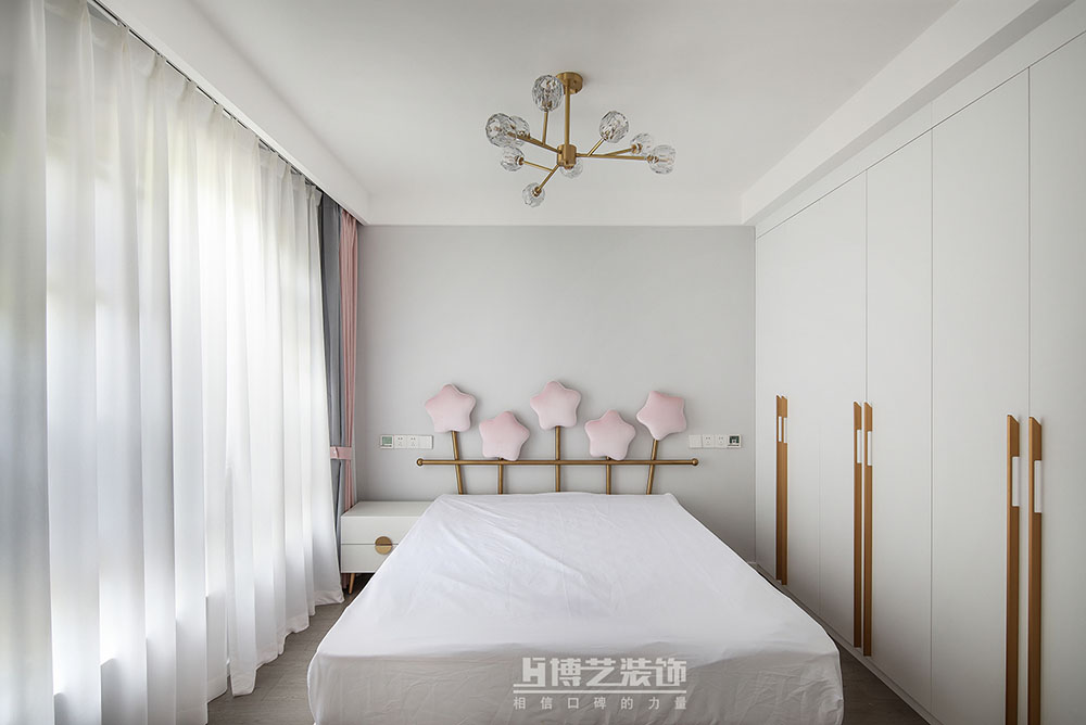 粉白粉白的布置,轻轻柔柔,造型独特的粉色星星床,轻抚着一个又一个甜蜜而美好的梦乡。