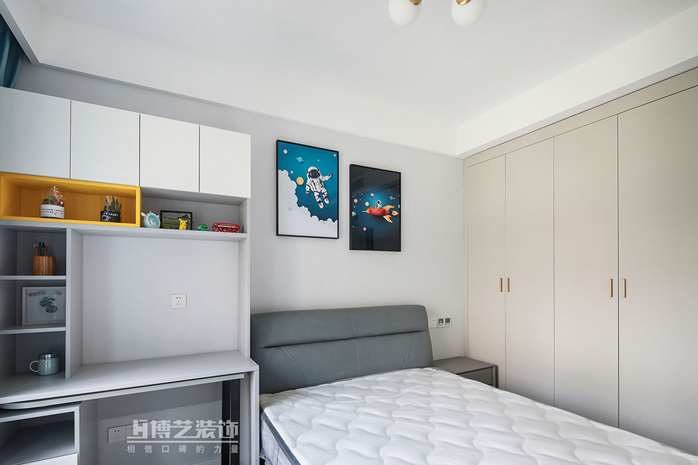 二楼主要是业主的休息区域,卧室都在这一层。把北面的储藏室与房间打通,作为女儿学习与休息的地方,外卫做干湿分离,提高空间的使用率。
