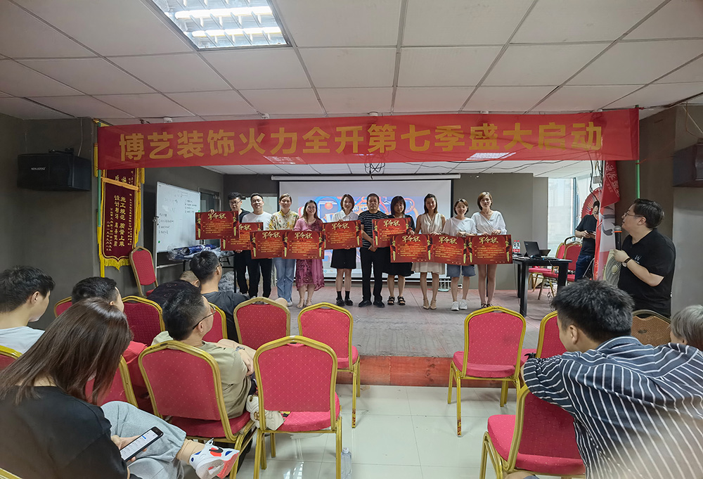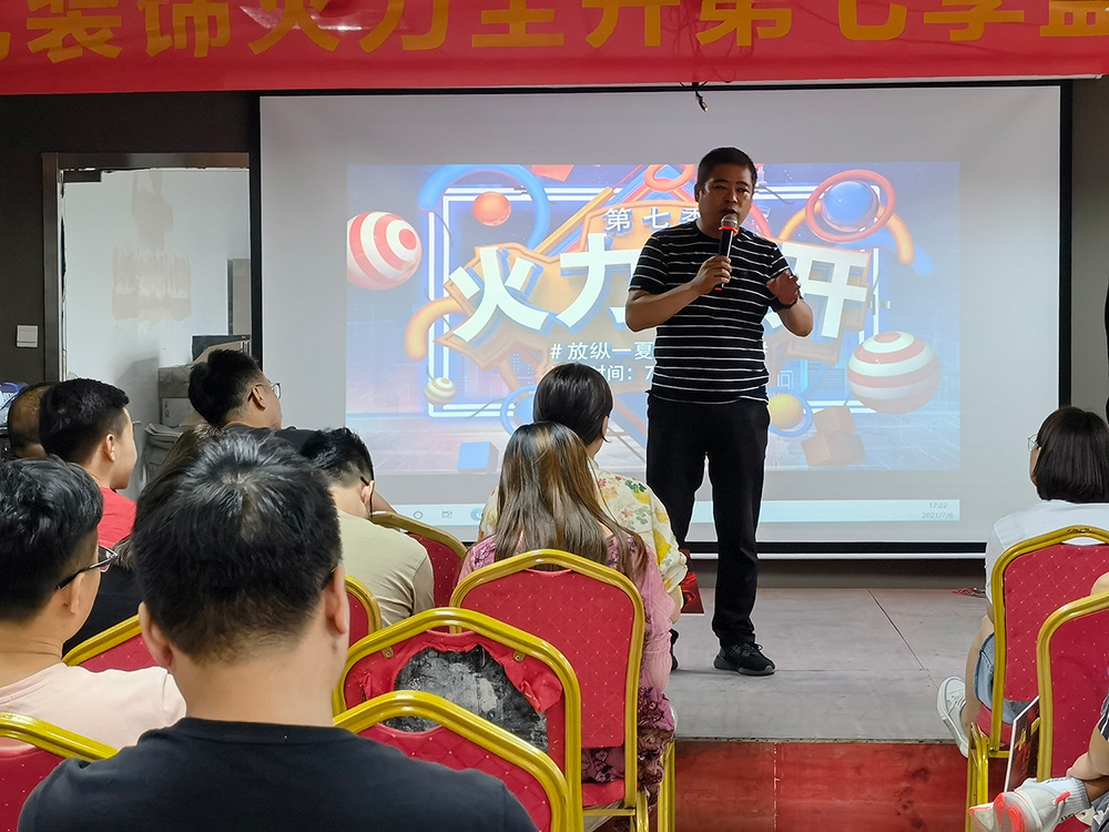 7月6日下午,博艺装饰第七季火力全开#放纵一夏 一路有你#启动大会热烈开启。博艺装饰总经理江总做活动启动发言。