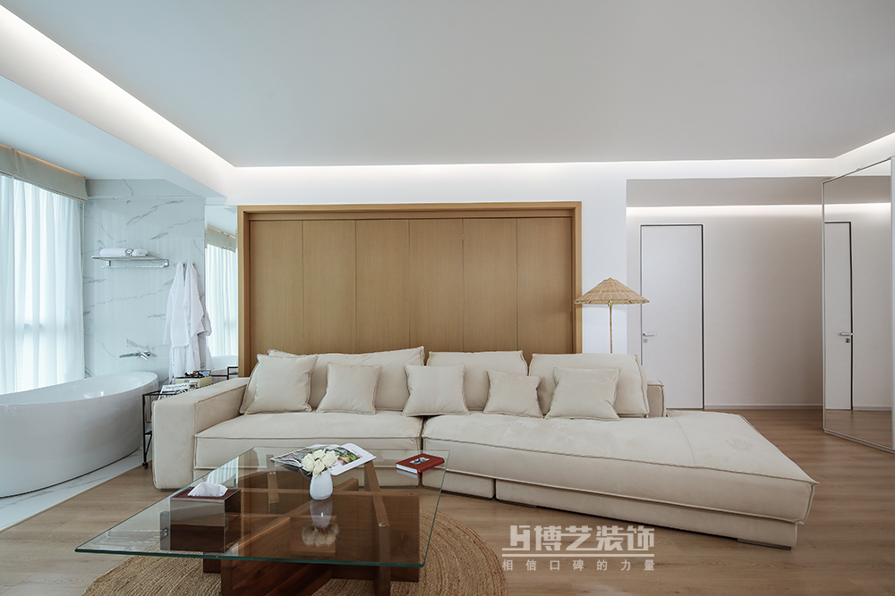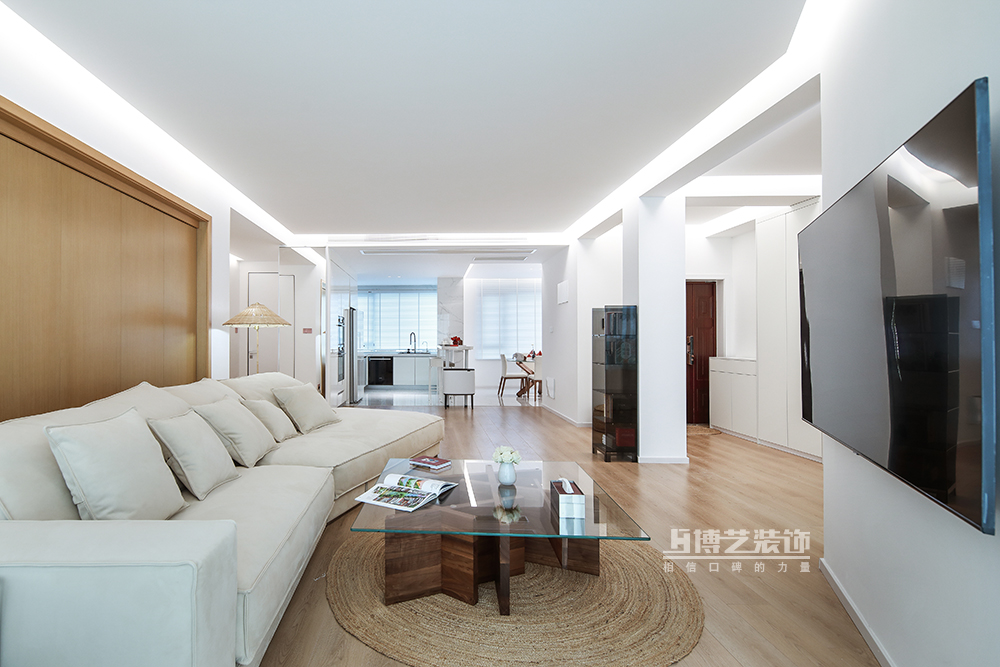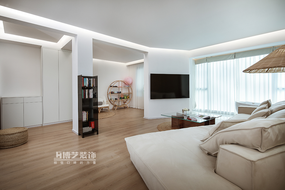 白色,素雅,空灵而迷人,大面积的白色,通铺延展的木地板,带来了空间里的温暖,搭配气质满分的软装,在细节处勾勒精致的生活意趣,打造一方安逸舒心的美学空间。
