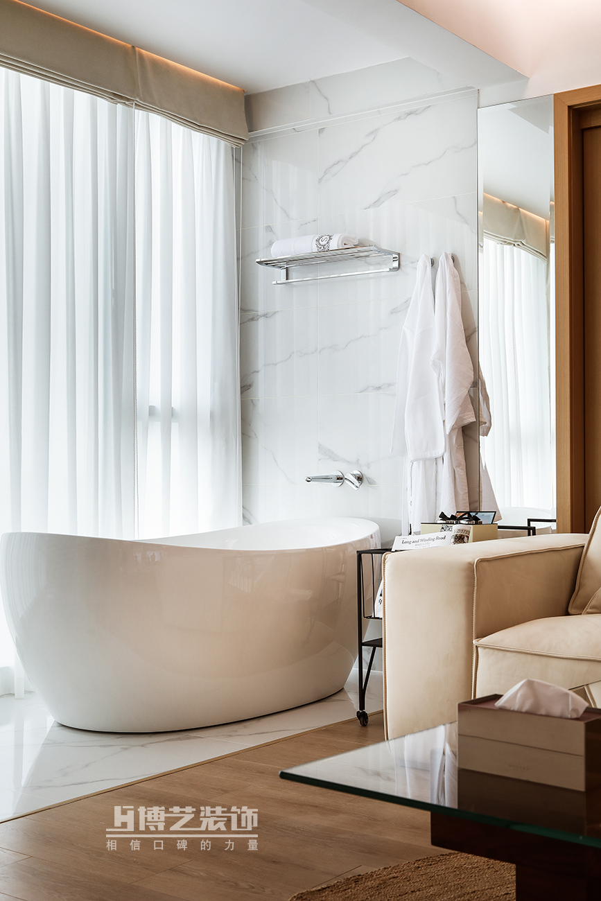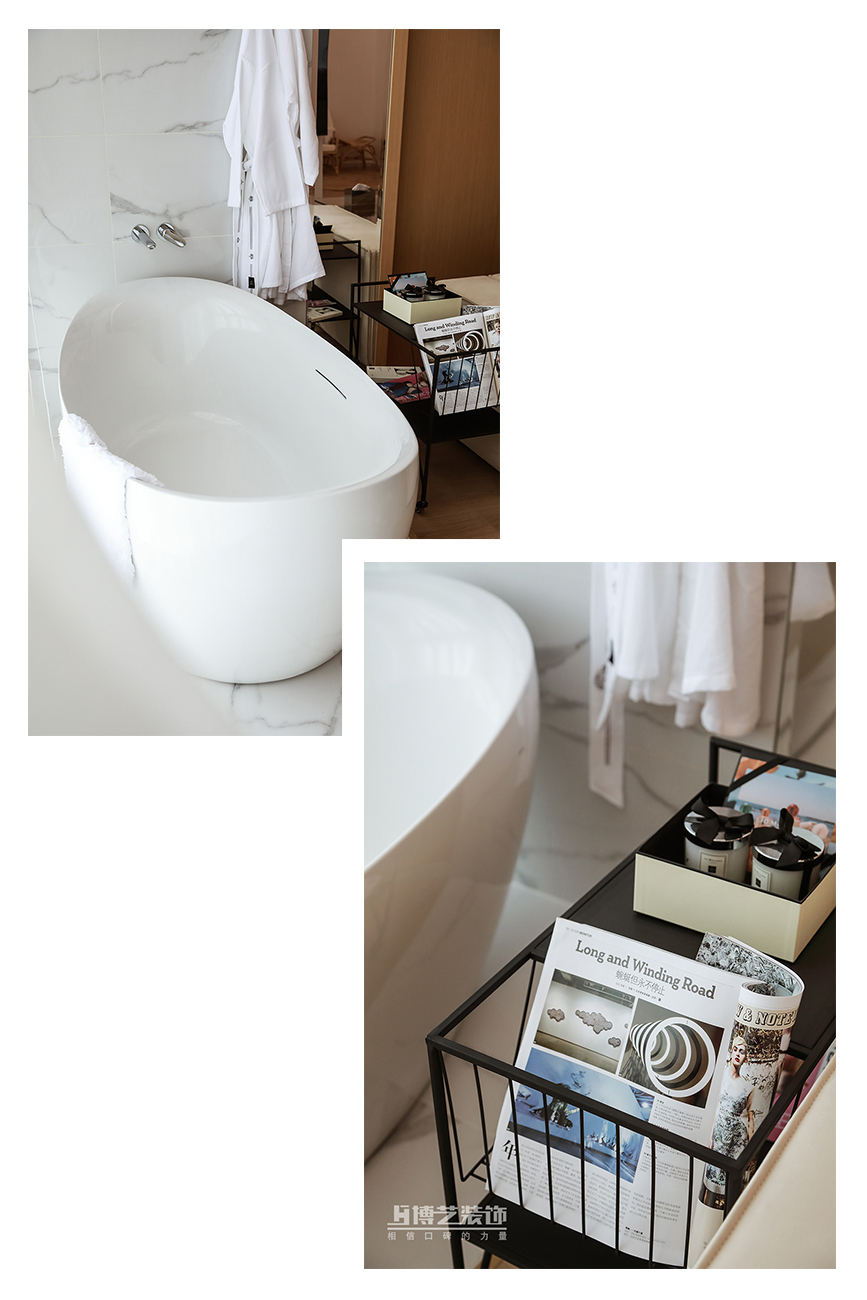 临床落地的大浴缸,通透感十足,在繁忙了一天的辛劳之后 ,尽情享受舒适的惬意,切换慢节奏自在度假时光。