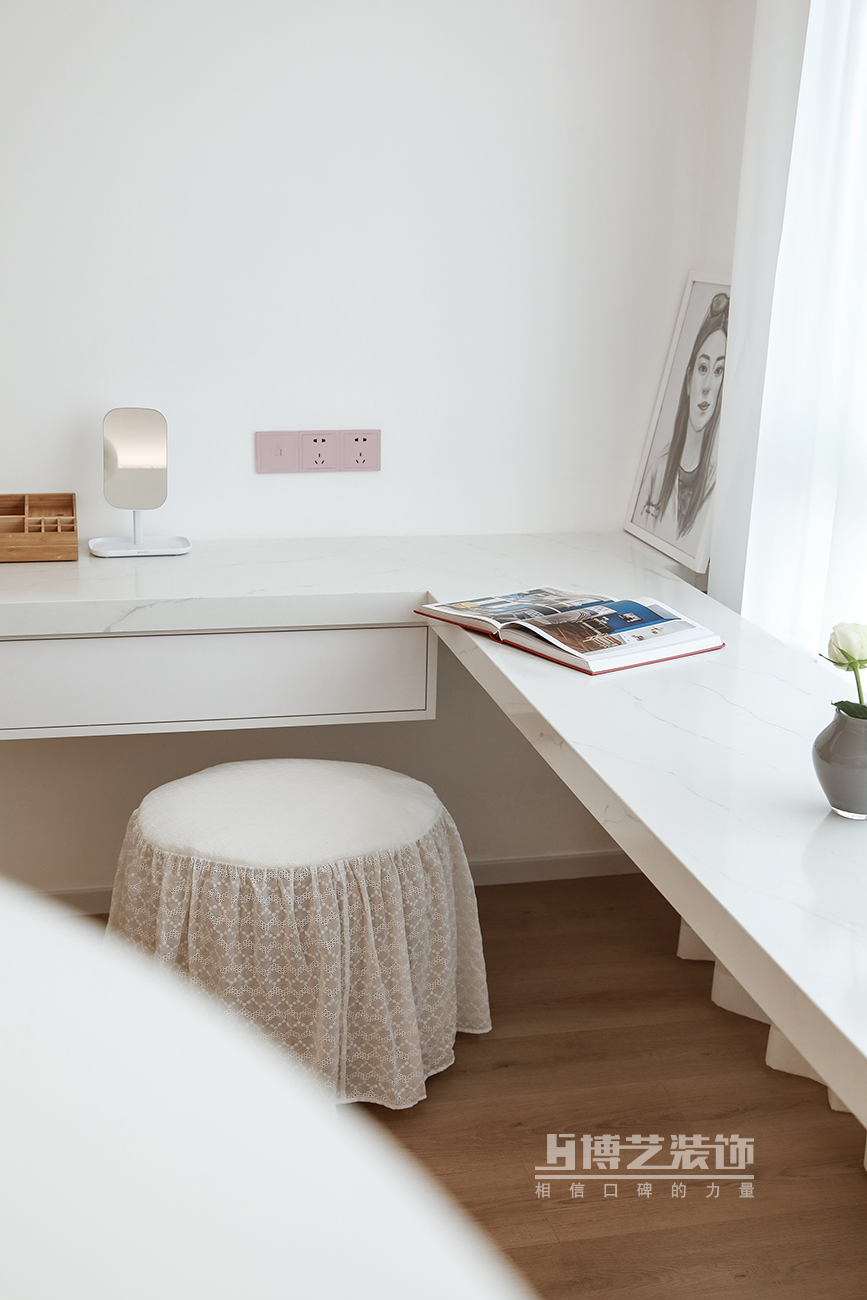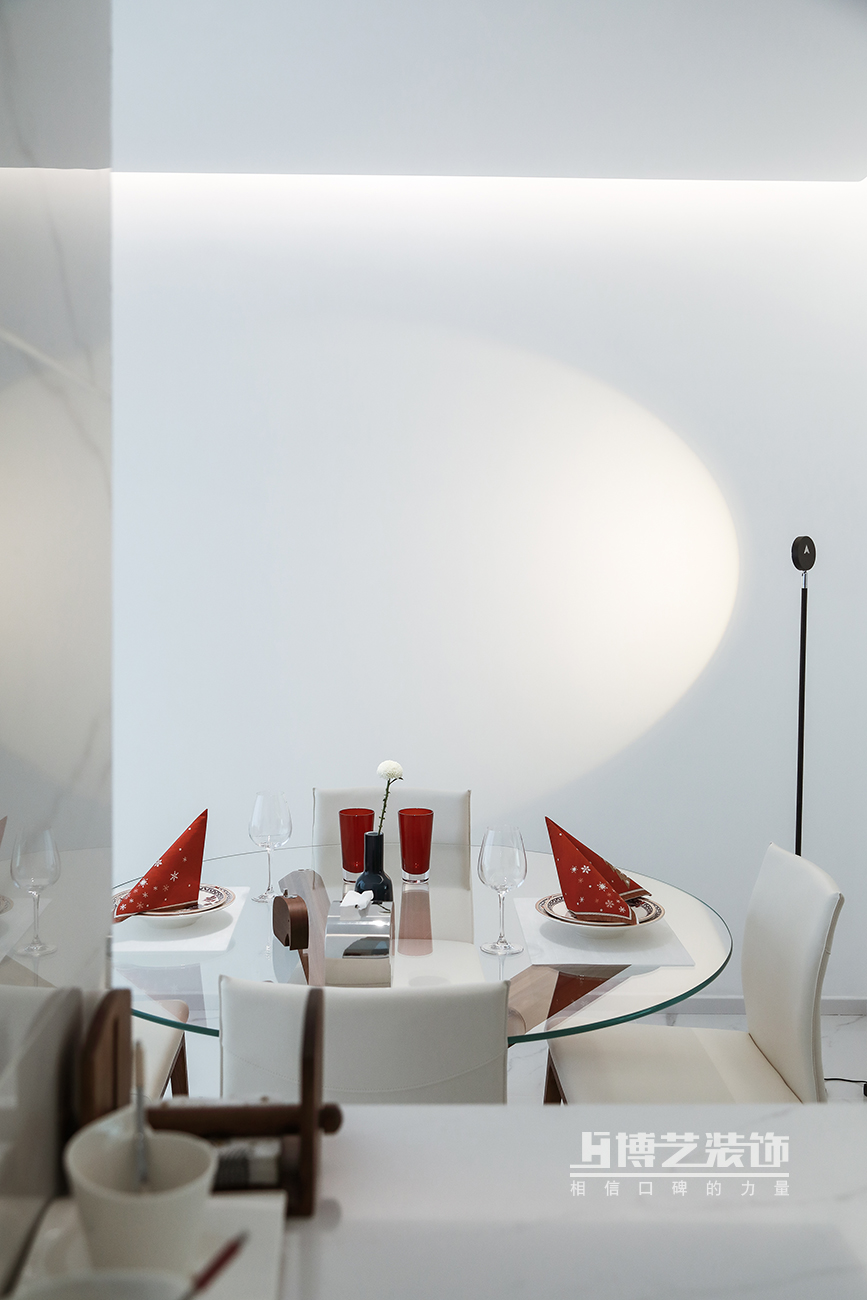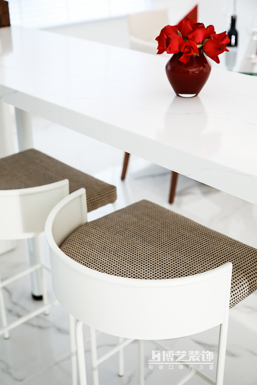 本案的业主知性优雅,从格局到风格最终定义呈现了现代的极简风,纯白的色调,极致的浪漫主义色彩,予以空间更多的自由感,以艺术的美学同感表达表象之下高雅的艺术生活。