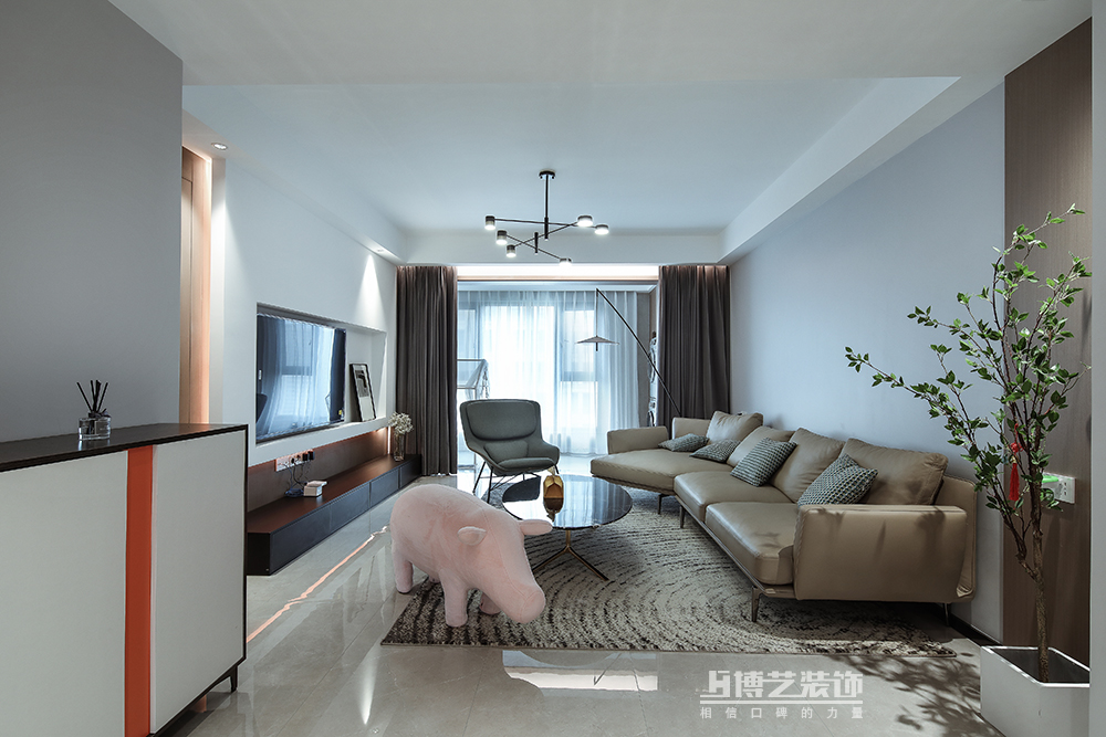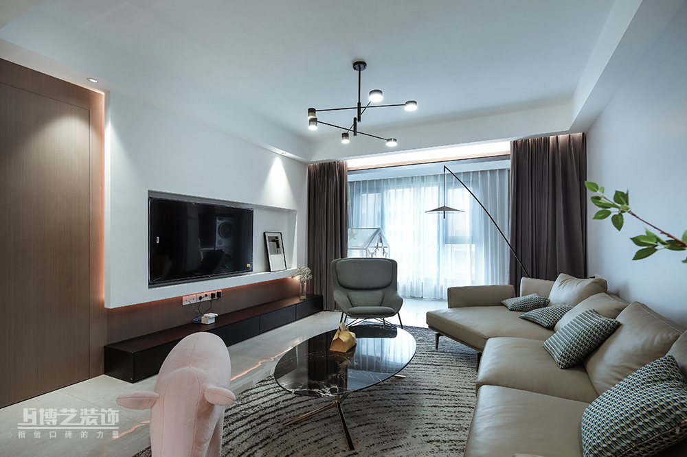本案是一套四口之家的改善型新居,设计师将风格定义为低调却不失品质的现代风,整体以白色为主基调,搭配造型简约,现代感的家具以及优雅大气的软装配饰,整体营造出一种时尚,现代感极强的空间氛围。