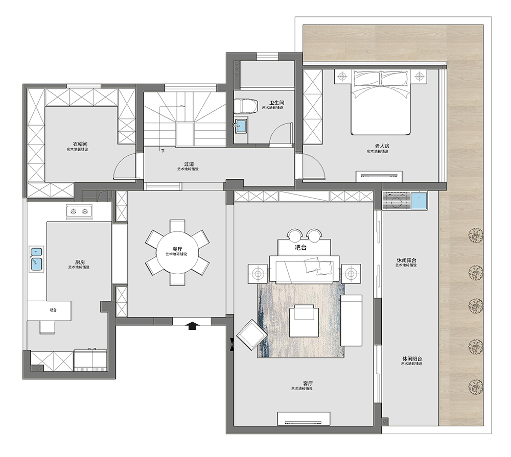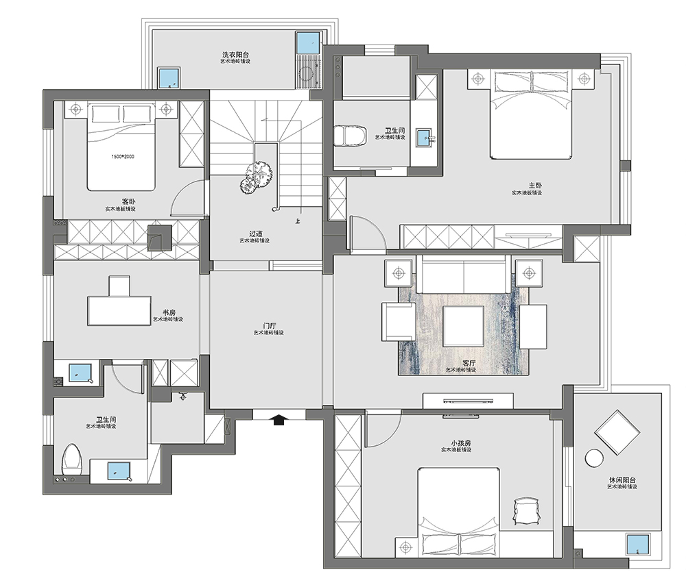 本案是一套两百多放的复式住宅,充盈的尺度空间,设计师以蓝色贯穿始终,还原业主静谧、安然的慢节奏生活理想,以通透、典雅的视觉体验,给人清新、自然的居住氛围。