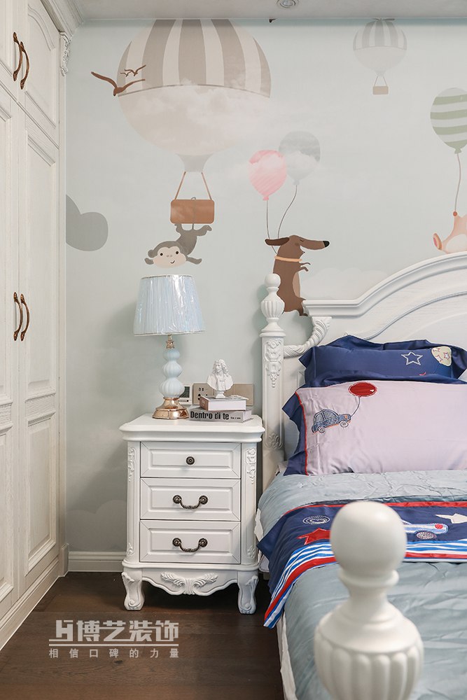 满是童趣的房间里,小动物的墙布背景,汽车的床品,星星的窗帘,这是小小少年快乐成长的一方小天地,这是一处童真的世界。