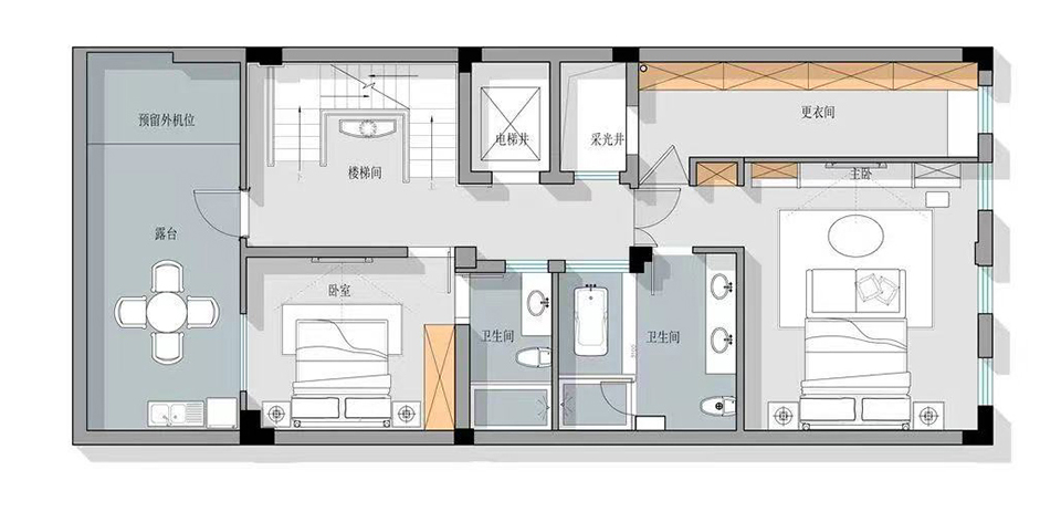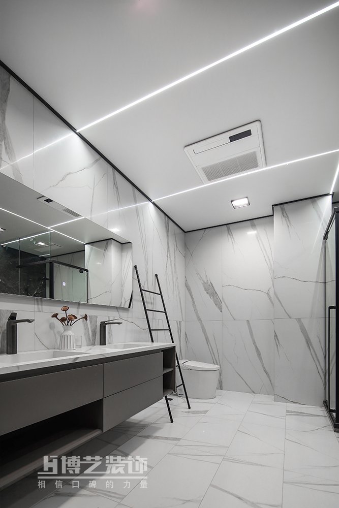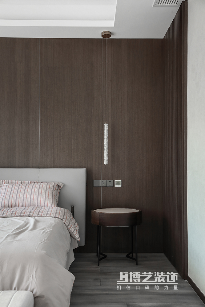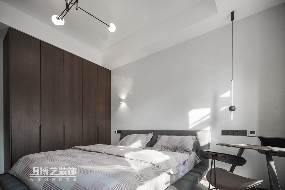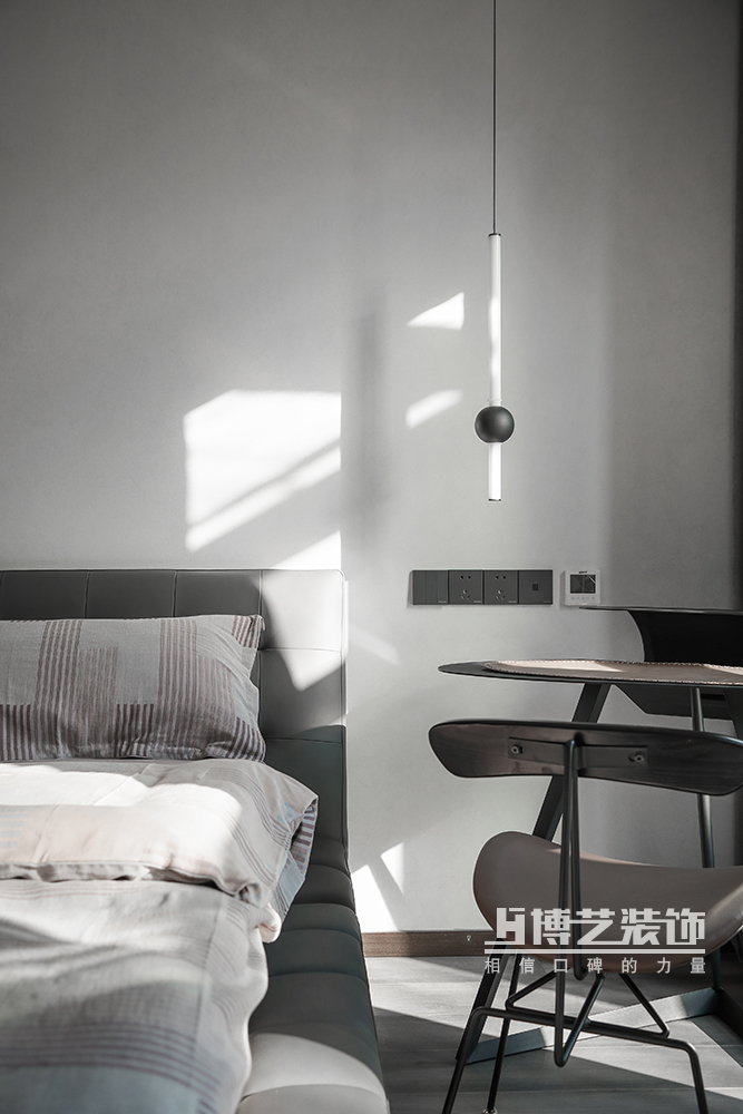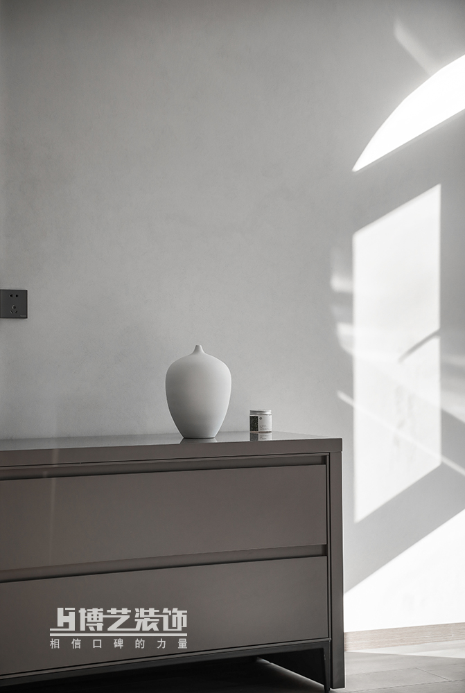 纯白、雅灰、深棕的搭配带来视觉上的澄澈与清爽,线条与色块的碰撞,用极简的语言表达空间温柔内敛的韵味。
