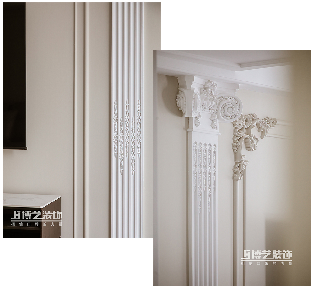 精美的法式立柱与雕花是整个空间的点睛之笔,饱满的立体感无论站在哪里都能感受到弥漫在空气中满满的法式浪漫主义的气息。