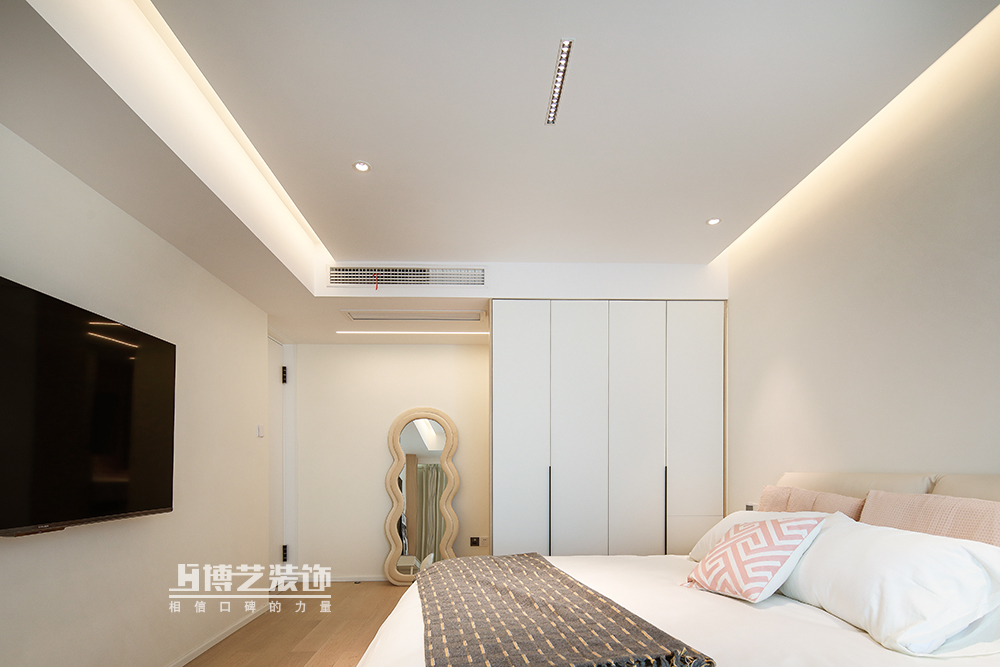 主卧采用无主灯设计,柔和不刺眼,氤氲的迷人氛围舒适且安定,当洗去的疲惫,沉浸无暇好睡眠。