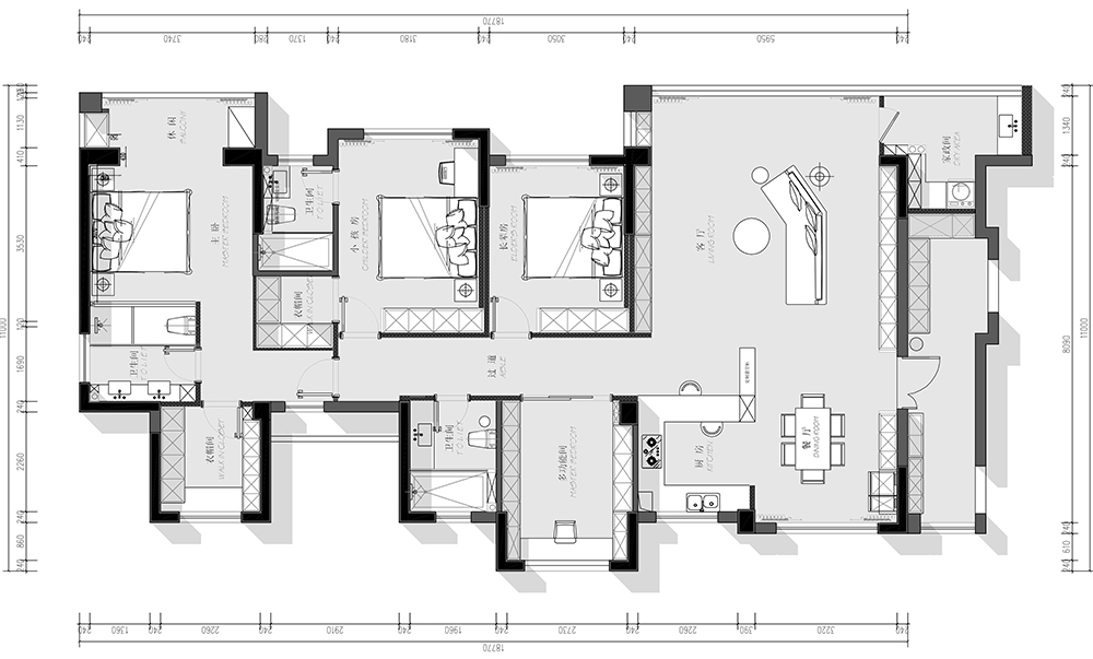 淡淡的暖灰不厚重,不浓烈,优雅得像春日里的暖阳。温馨而安宁的环境让身体可以完全的放松,休息也更加舒坦。