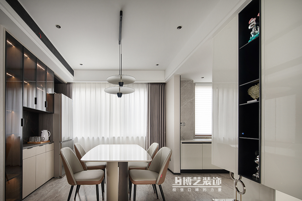 餐厅采光优渥,室外的光线自然引入,白色为主的空间自带滤镜,柔和的环境更易拉近家人见的距离,让就餐的氛围更温馨和谐。
