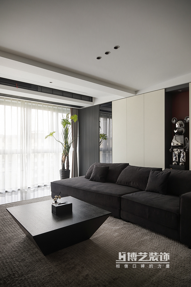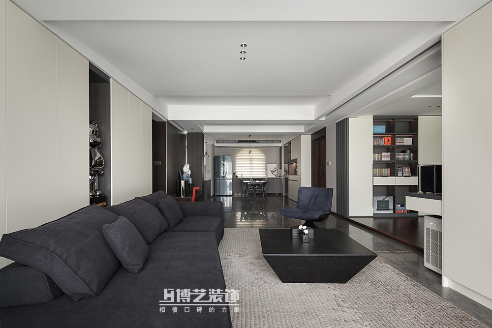 客厅采用的是一个“去客厅”的设计,去掉“鸡肋”的电视背景墙,使整体空间更加的宽阔透明,符合当下年轻人喜欢聚会、交友的兴趣爱好。