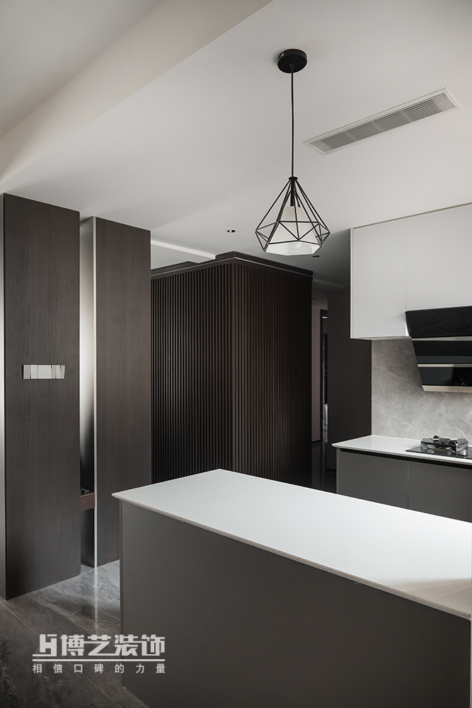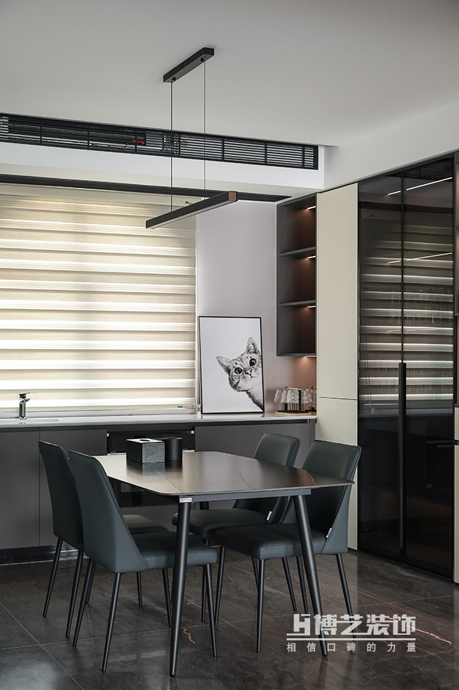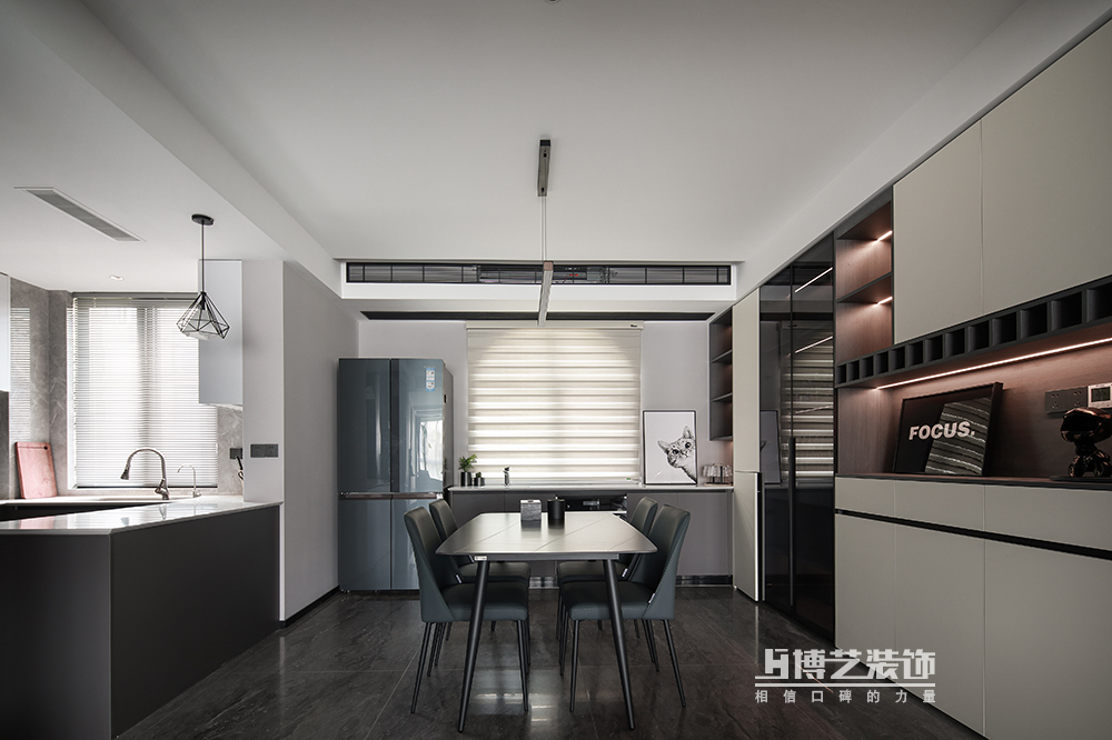 餐厨一体的设计优化了动线,让烹饪更流畅同时也提高空间利用率。不受拘束的场域也让家庭间的互动变得频繁,就餐不是简单的饱腹,更是情感的交流。