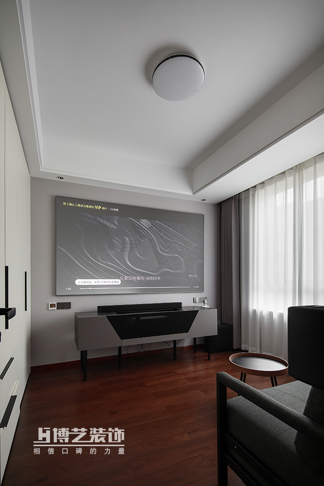 单独的影音室可以在工作之余放松和愉悦身心,拉进亲朋之间的距离,增加情感的交流。