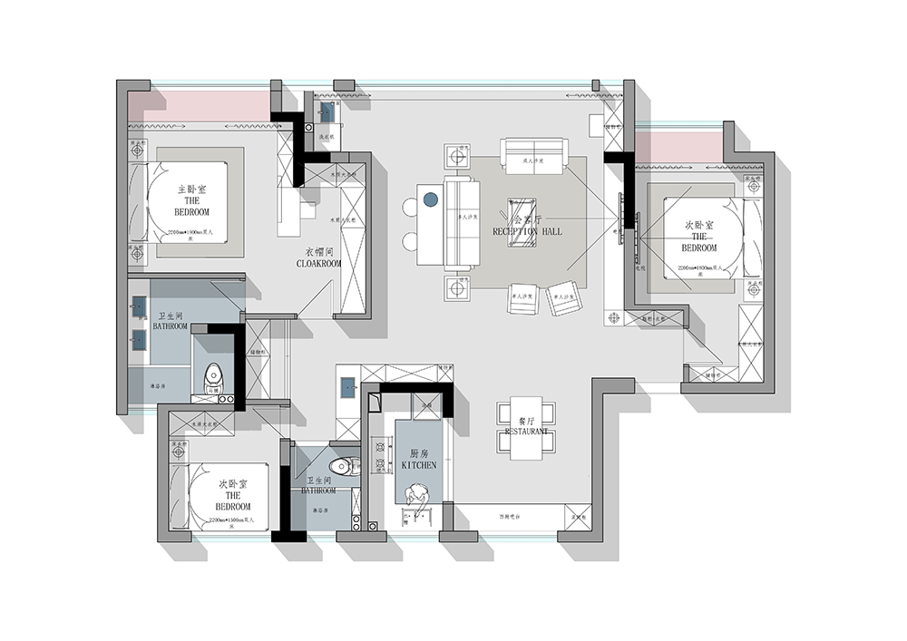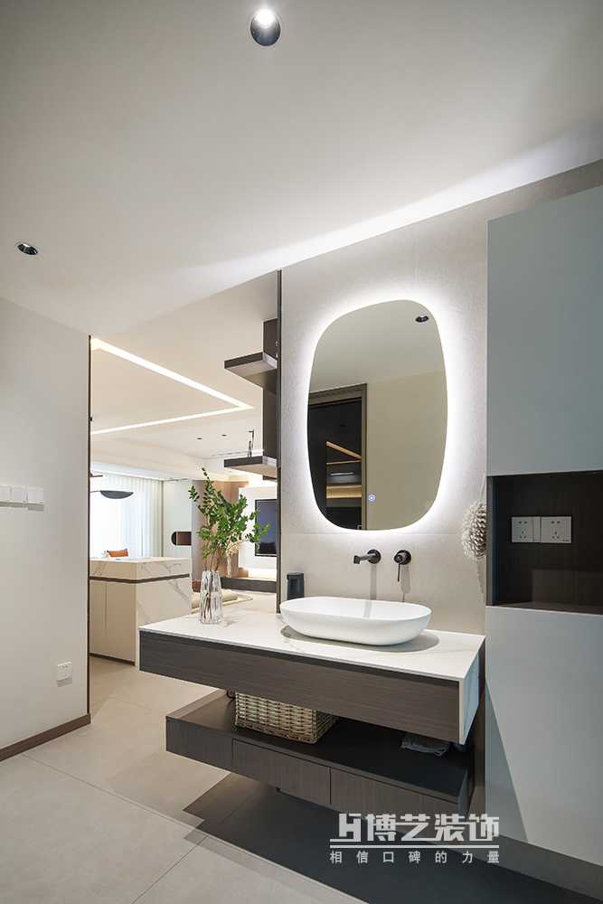 干湿分离的设计,干区做“L”型设计与过道相容,增加空间的互通与美感,同时兼具实用性。